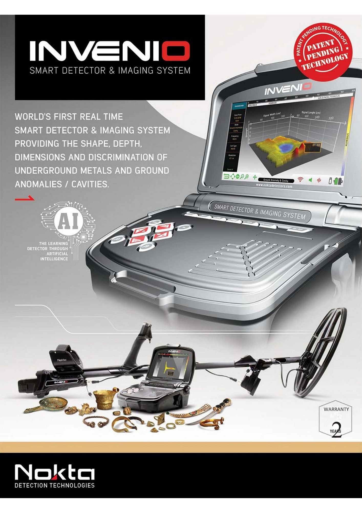 Invenio repræsenterer et af de største fremskridt inden for metaldetektor-teknologi siden introduktionen af de konventionelle metaldetektorer i 1930'erne. Selvom mange nye funktioner og teknologiske udviklinger er kommet til siden da, er Invenio det første store skridt fremad inden for visuel billeddannelse i metaldetektion. Efter mange års intensiv forskning og udvikling har Nokta skabt verdens første smarte detektor- og billedsystem – en teknologi med hele tre patenter.